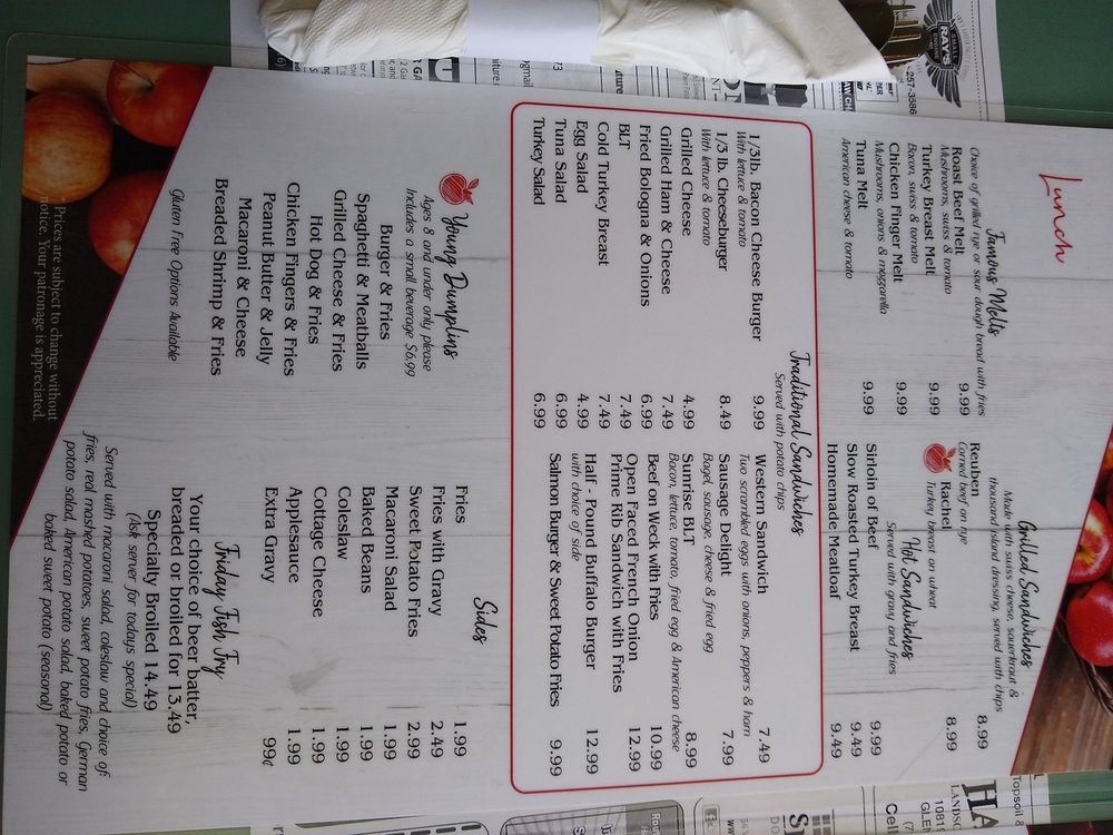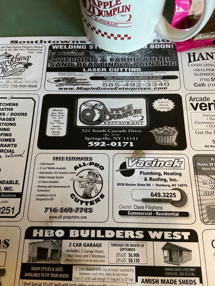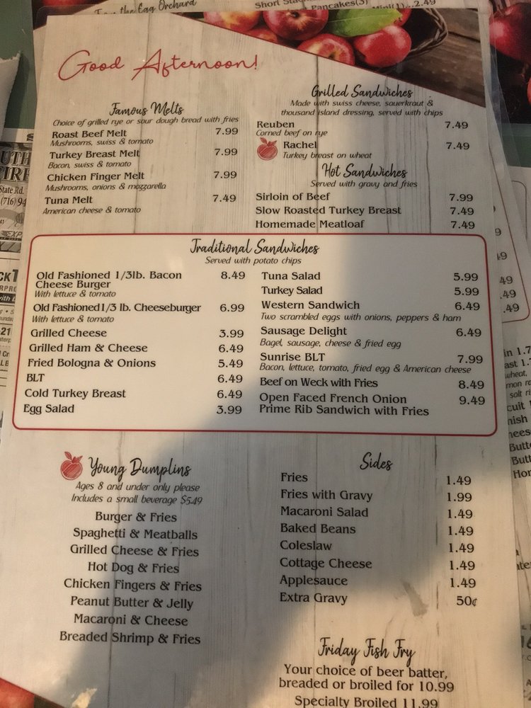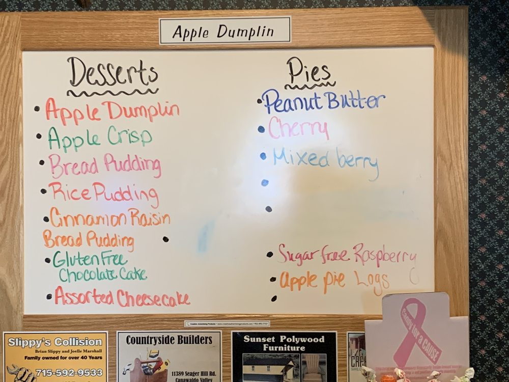 Apple Dumplin is a charming diner located in Springville, NY, offering a cozy and welcoming atmosphere. Customers rave about the country home cooking, with fresh and beautifully prepared dishes that include homemade pies, desserts, and gluten-free options. The menu features breakfast favorites like the King Cheese Omelette and killer home fries. The friendly service and fast wait staff create a pleasant dining experience, attracting a diverse range of customers. The ambiance is described as nice, cozy, and up-to-date, making guests feel right at home. With a wide variety of food options, including Friday fish specials, Apple Dumplin is the perfect spot for a delicious meal with family and friends. Stop by for a taste of authentic home-style cooking and enjoy the warm hospitality that this diner has to offer.